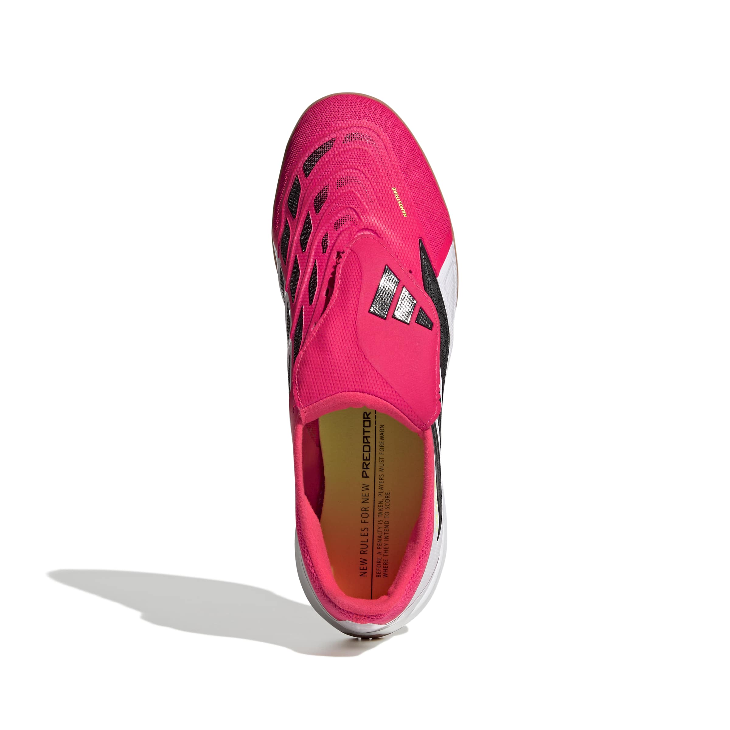 Put on the Predator League Fold-Over Tongue Indoor Football Shoes and you can feel truly confident and unlock your potential with every strike. The innovative mesh upper and Nanostrike technology help you deliver precision and power with each shot. Experience the power of Lightstrike cushioning, with a super-light midsole designed for dynamic movement. PowerSpine technology provides midfoot stability for a stronger shot. The iconic foldover tongue creates a smooth striking surface, allowing you to focus on your match without distractions. Embrace the future of football with these new adidas shoes, where a variety of high-performance technology meets the comfort you're looking for.