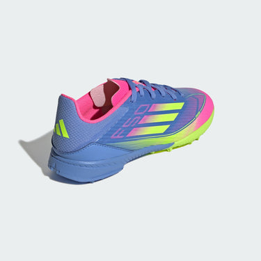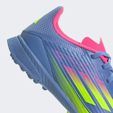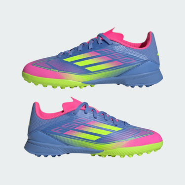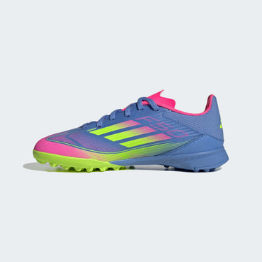 Push your pace to the limit in lightweight adidas F50 footwear engineered for speed. Standing out with an eye-catching Sprintgrid print, the Fiberskin upper on these juniors' League football boots employs an adaptive Tunnel Tongue that locks you in for the ride. Sitting on a lug rubber outsole made for artificial turf, soft EVA cushions every step.